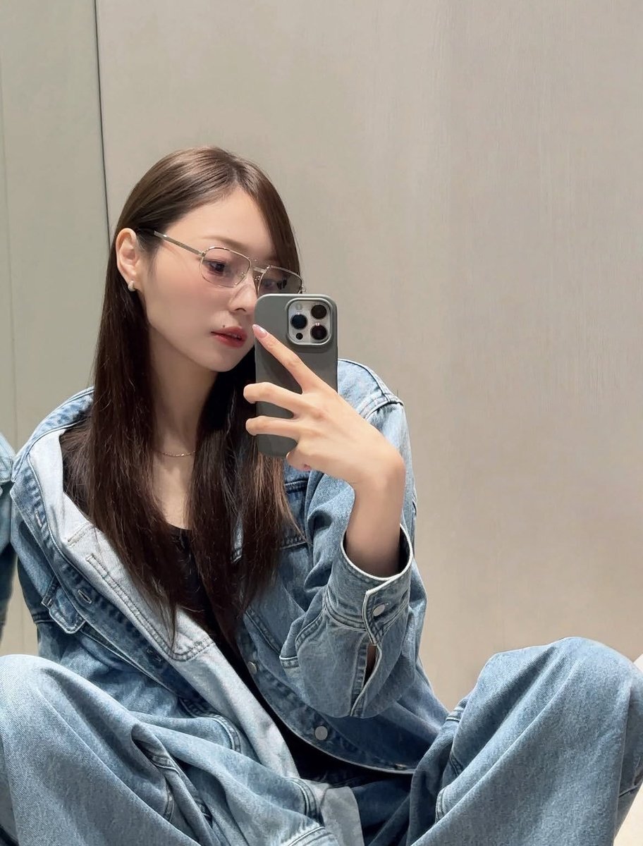 少し呼吸が戻ったので好きポイント ・リムレス感あるメガネ破壊力高すぎ ・デニムセットアップ+あぐらのハッピーセット ・梅様にしかできないスマホ手首直角持ち ・ここで珍しくリングなしはズルすぎる、メガネとネックレスの攻撃力がぐーんと上がってる #umegram x.com/m629doubaka/st…